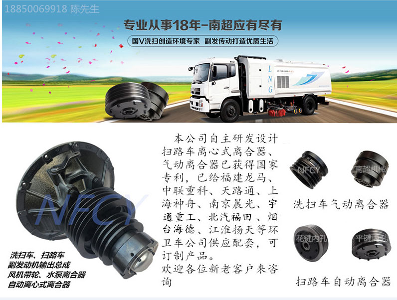 本公司自主研發(fā)設計掃路車離心離合器、氣動離合器已獲得國家專利。